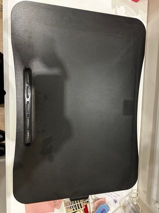 Mesa adaptable para portátil, ideal para usar en la cama, sofá o suelo. Permite ajustar el ángulo hasta 180 grados. Estructura de metal resistente, superficie estable y de fácil almacenamiento. Se entrega con caja y hoja de instrucciones.