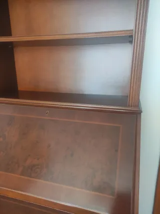 Vendo secreter de madera en buen estado. Cuenta con 3 cajones, estantes y compartimento inferior con puerta. Ideal como zona de estudio o trabajo. Robusto y funcional