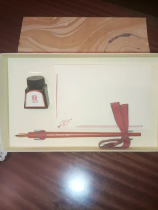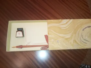 Elegante plumier vintage de la marca LOEWE, perfecto para coleccionistas o amantes de la escritura. - Incluye tintero. - Pluma de escritura. - Diseño clásico y sofisticado.