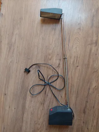 Lámpara de escritorio retro años 70s con un diseño clásico ideal para tu escritorio o mesa de trabajo. Su diseño articulado permite ajustar la luz fácilmente. 100% funcional con mucho carácter. Interruptor en la tulipa. Con desgaste y marcas del uso y paso del tiempo. Tags: lampada aplique lamp lampe fase metalarte lupela luxo ledo mila antiguo antigua escritorio habitación arquitecto dibujante estudiante taller teatro cine atrezzo decoración retro industrial oro plata reloj piel aparador escaparate nordico nordica teka grohe zafiro tocadisco radio transistor bicicleta fixie bici sofa piel oro juguete taller plata