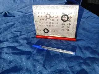 Elegante calendario perpetuo de plata de ley, una pieza vintage con un diseño clásico. - Fabricado en plata de ley. - Diseño grabado con números y meses. - Base roja. - Ideal como objeto decorativo. HAZME UNA OFERTA