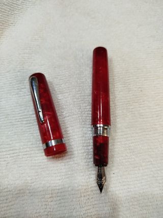 elegante pluma estilográfica de madera y metal dorado con punta de Iridium
