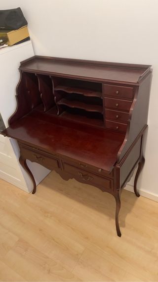 Escritorio Bureao antiguo (desconozco edad), estilo frances finales del siglo XIX. Se conservan las llaves de los cajones Espejo a conjunto incluido