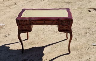 Vendo mueble tocador de madera maciza con detalles tallado a mano en buen estado excepto algunas marcas de uso mide 92×72×51 la parte de encima con blanco es piel es un mueble muy bonito. Posibilidad de trasporte escritorio victoriano victorianas isabelina madera maciza mid century vintage rustico joyero habitaciones habitación casa piso comedor maquillaje deco atrezzo
