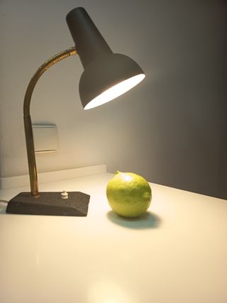 Lámpara de escritorio funcional, en muy buen estado. Perfecta para iluminar tu espacio de trabajo. El ángulo de la luz se puede ajustar.