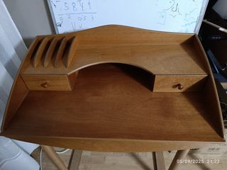 Precioso escritorio de madera con un diseño clásico y elegante. Se encuentra en perfecto estado, listo para darle un toque vintage a tu espacio. - Diseño con compartimentos y cajones. - Acabado natural de la madera.