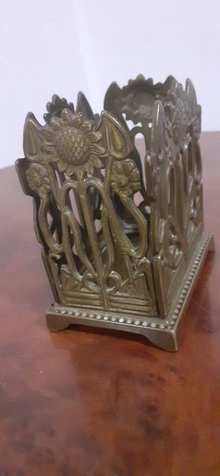 Portalapices u organizador de bronce Art Nouveau antiguo. Útil de escritorio o sobremesa. Preciosa pátina y elaborados detalles modernistas con figuras vegetales de girasoles. figura, escultura, pickman, La Cartuja de Sevilla, Antigüedades porcelana, armani, cocina dupont, montblanc, cartier santo, rolex, omega, gucci numismática, santa, sevres, limoges, dior, hermes, joya reloj, lladro, oro, plata, tous, iglesia, manises, algora, cuadro, óleo, marco pintura, molinillo, quinque perfume, moneda, ejército militar, cañón muebles iphone, almirez, campana, ikea, latón, piso, joyería, lámpara, lancome, cacharel, loewe, casa