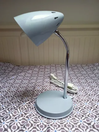 Preciosa lampara de escritorio de estilo vintage. Es perfecta para iluminar tu espacio de trabajo o estudio. - Tiene un diseño elegante y funcional. - Su brazo flexible permite ajustar la dirección de la luz fácilmente. - Incluye un interruptor en el cable para mayor comodidad.