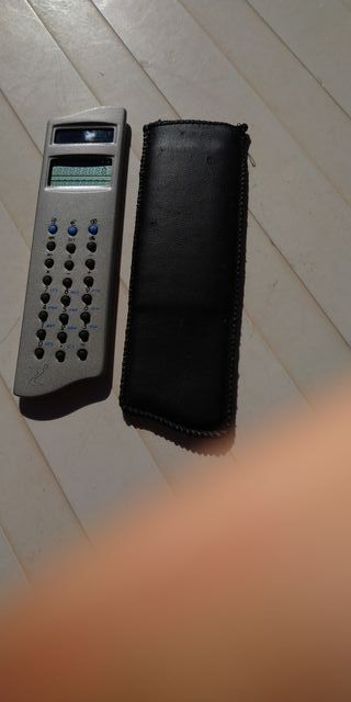 Calculadora de bolsillo vintage en color plateado con funda de cuero sintético. Hecha en acero fundido. Con conversor de € a pesetas. Funciona perfectamente con energia solar o a bateria. Necesita bateria nueva. Un accesorio retro con un diseño elegante. Modelo Casio FX-915 - Diseño compacto y portátil. - Acabado metálico plateado. - Funciona con energía solar.