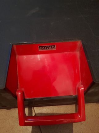Maquina de escribir Kovac portátil con su caja original. Perfecto estado de conservación. En rojo y negro, con las teclas blancas. Typewriter, retro, vintage, colección, coleccionismo, atrezzo, teatro, decoración, maquina, antigua, antiguedad