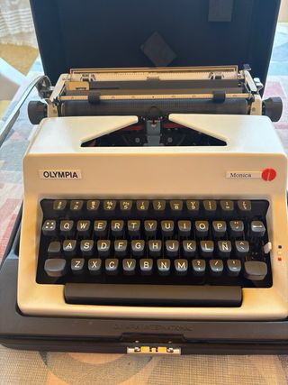 🖋️ Máquina de escribir Olympia Monica – Vintage – Fabricada en Alemania Vendo máquina de escribir Olympia Monica en excelente estado de conservación y funcionamiento, perfecta para coleccionistas, decoración retro o para quien desee escribir a la antigua usanza. 🔹 Características: - Modelo original de los años 60/70 - Funcionando al 100 %: teclas, carro, rodillo y cinta - Teclado español QWERTY - Incluye estuche rígido original, muy bien conservado - Cinta instalada, lista para usar - Estética cuidada, sin golpes ni óxido 🎁 Ideal para: - Coleccionistas vintage - Escritores nostálgicos - Decoración de oficinas o escaparates.