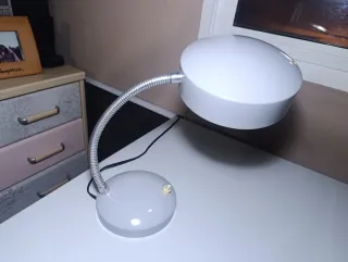 Lámpara de escritorio con un diseño clásico de los años 60. Su estilo retro la hace un complemento perfecto para cualquier espacio. - Base redonda y estable. - Brazo flexible para ajustar la luz. - Interruptor en la base.
