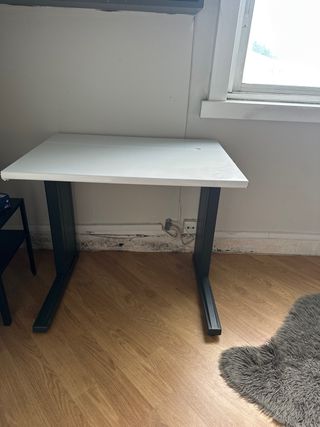Mesa de escritorio funcional y moderna. Su diseño sencillo se adapta a cualquier espacio. Tiene dos desperfectos en las fotos, pero sigue siendo funcional si no la vendo la regalaré. Se puede entregar desmontada. - Patas metálicas estables. - Superficie amplia y lisa.
