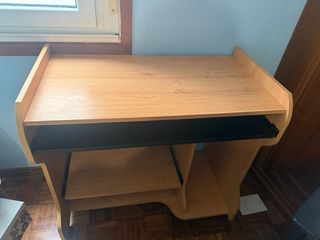 Escritorio para ordenador Ikea con plataforma extraible para teclado y raton (muy comoda y genia para mantener la superficie despejada). - Tablero de 120x60cm - Altura de 74cm