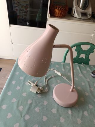 Flexo de escritorio en color rosa, perfecto para estudiar o trabajar. - Diseño moderno y funcional. - Base redonda y estable. - Brazo flexible para dirigir la luz.