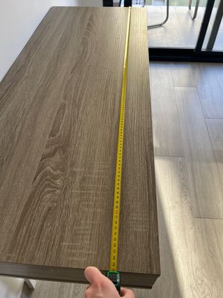 Escritorio de diseño moderno con una superficie amplia y limpia. - Estructura robusta y estable. - Patas resistentes para mayor durabilidad. - Acabado liso y fácil de limpiar. Medidas Ancho: 160cm Fondo: 67cm Alto: 75.5cm Al desmontarlo se ha dado un golpe y tiene ese desperfecto en la esquina izquierda superior