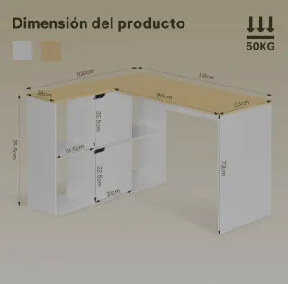 Escritorio en forma de L con un diseño moderno y funcional. NUEVO A ESTRENAR en su embalaje original. - Superficie de trabajo espaciosa. - Compartimentos de almacenamiento integrados. - Estructura robusta.