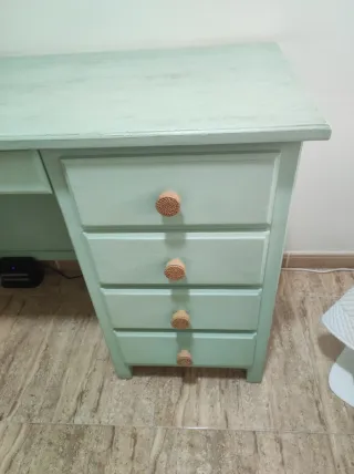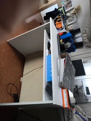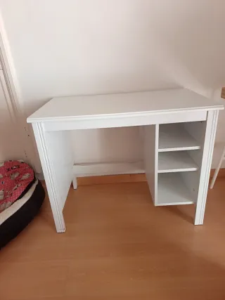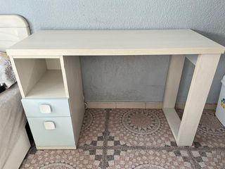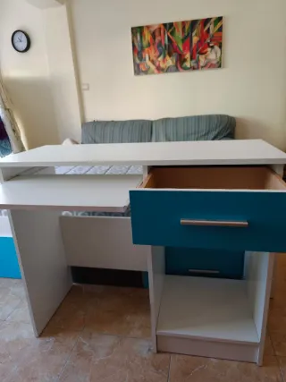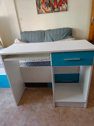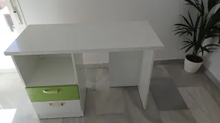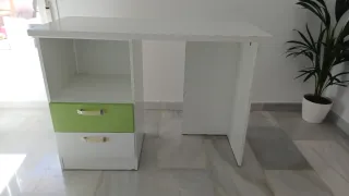 Escritorio prácticamente nuevo a estrenar. Se montó hace cosa de un año pero la habitación no se usó. También tengo la cama nido a juego en el perfil, si es de interés.