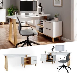 Mesa de escritorio angular madera y metal