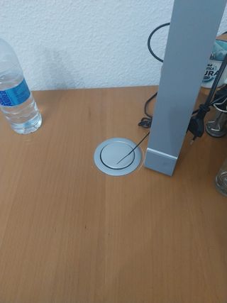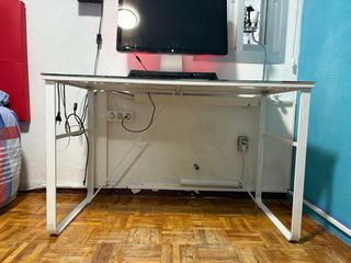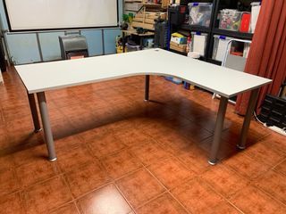Escritorio ikea amplio, está en buen estado, pero tiene una parte levantada por agua que absorbió, si os interesa subo mas fotos, si pones un monitor delante ni se nota