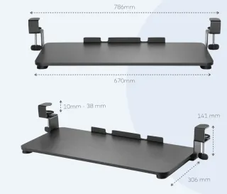 Oferta. Bandeja extraíble para teclado y escritorio, color negro. Oculta el teclado bajo el escritorio. 300x680 mm aprox. Sujeción émbolo-mesa 10 - 38 mm. Separación mesa 141 mm. Ver foto con medidas. No se envía. Recogida local. Venta privada sin garantía ni posibilidad de reclamación.