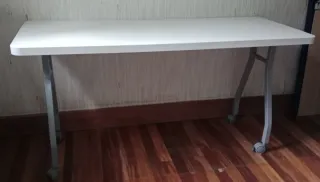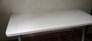Mesa multiusos, se ha utilizado como escritorio con altura moldeable, las patas se regulan hasta 90cm. Medida del tablero: 120 x 60