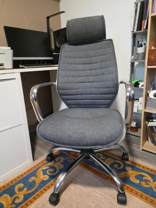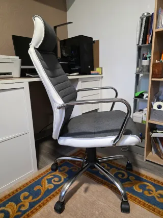 Silla de escritorio con diseño ergonómico y moderno. Vendo silla de oficina ergonómica con reposacabezas y soporte lumbar. Comprada en Amazon en 2023. - Respaldo de malla transpirable. - Asiento acolchado. - Reposabrazos ajustables. - Base robusta. Muy cómoda para estudio u oficina en casa. Buen estado. Recogida en mano.