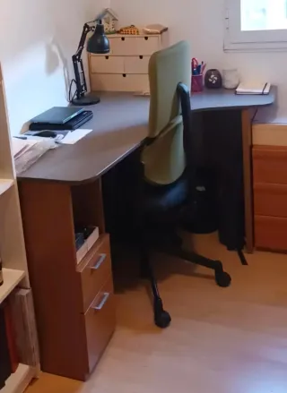 Conjunto de escritorio y silla de oficina. - Escritorio espacioso con cajones. - Silla de oficina incluida.