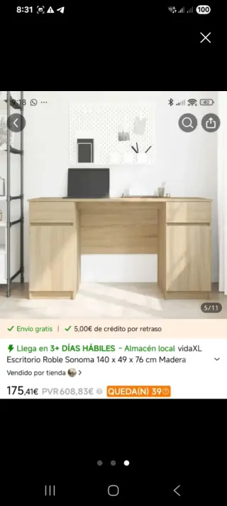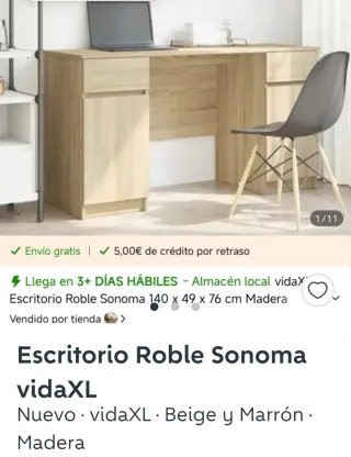 Escritorio de estilo moderno, perfecto para tu espacio de trabajo o estudio. Sus dimensiones son 140 cm de ancho, 49 cm de profundidad y 76 cm de alto. - Embalado sin abrir ,no me di cuenta que era muy largo. - Diseño elegante en Roble Sonoma. - Amplia superficie de trabajo. - Acabado en madera.