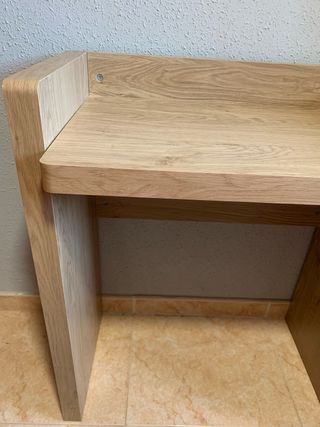Mueble auxiliar de madera, para un recibidor o como escritorio. medidas 93,5 cm de largo, 40 cm de ancho y 77 cm de alto. Tirador de metal En buen estado. Tiene una marca en el borde, como una mancha de la madera. Adquirido en El Corte Inglés Se entrega montado tal cual la foto.