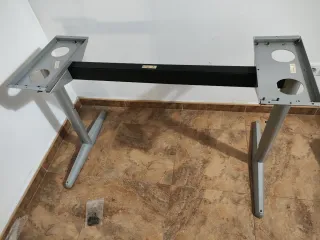 Conjunto de patas para mesa Effektiv de Ikea. Fabricadas en metal, combinan gris y negro. - Estructura robusta. - Diseño moderno. En Lleida o Cambrils.