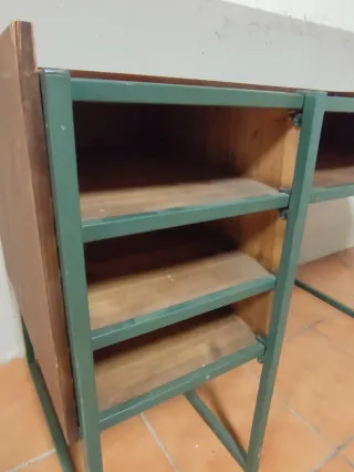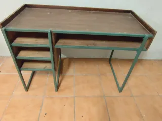 Mesa escritorio en perfecto estado, estructura de hierro fácil de desmontar y sobre de madera