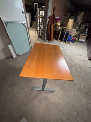 Elegante mesa de despacho con un diseño moderno y funcional. - Tablero de madera de alta calidad. - Base robusta en color oscuro. Disponibles 6 mesas.