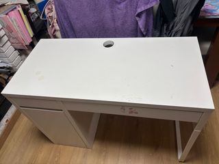 Escritorio funcional con un diseño moderno y detalles encantadores. - Acabado principal en blanco. - Un cajón integrado para almacenamiento. Lleva señales de uso tal como se muestra en las fotos pero muy apañado para estudiar