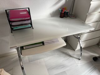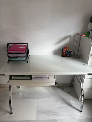 Escritorio cristal blanco y metracrilato