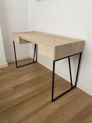 Tenemos 2 Escritorios, con un diseño moderno y elegante, ideal para cualquier espacio. - Patas de metal negro. - Tablero de madera con acabado natural. - Estructura metálica robusta. tengo 2 unidades cada mesa 40€ sin rayaduras ni daños. vendo por espacio puedes ver sin compromiso no hacemos envíos se venden desmontadas