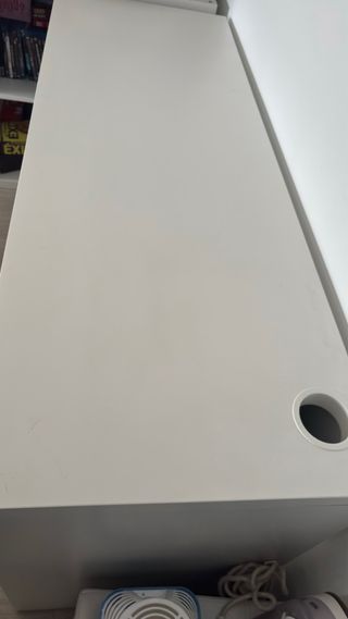 Escritorio Andriy de Leroy Merlin en color blanco. Su diseño es moderno y funcional. - Acabado en madera. - Patas robustas. ✨ Detalles: ™️ Marca: Leroy Merlin ♻️ Estado: Escritorio en perfecto estado, esta un poco usado, únicamente lo he tenido en uso tres semanas. Descuentos si te llevas más de una prenda de mi perfil🎁 ¡¡ESCUCHO OFERTAS!!