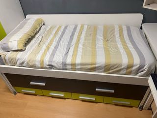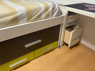 Cama doble con escritorio y cajones