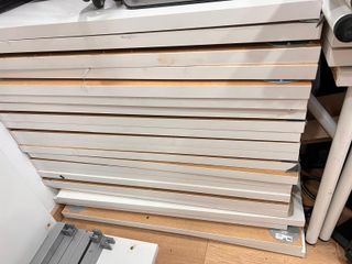 Conjunto de 28 mesas de escritorio. - Color blanco. el precio es en conjunto, individual consultar. - Fabricadas en madera.