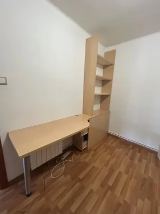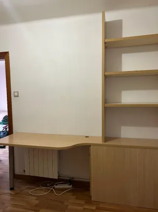Escritorio y estantería en perfecto estado, como nuevo. - Diseño moderno y funcional. - Combinación de colores madera y rosa. - Amplia superficie de trabajo. - Compartimentos de almacenaje - Con dos cajoneras y arcón bajo escritorio para almacenaje muy útil.