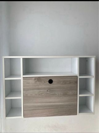 Práctico escritorio de pared que se pliega para ahorrar espacio. - Diseño moderno y funcional. - Acabado en madera y blanco. Precio en tienda 119