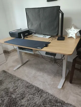 Escritorio moderno con superficie de madera y estructura de metal. Precio original 180€. Casi sin uso. No desperfectos - Altura ajustable para mayor comodidad. - Diseño elegante y funcional. -Dimensiones del producto 140 x 80 -ColorRoble -Rango de ajuste de altura de 72-118 -Puerto de carga para USB C, lo que permite la carga simultánea de varios dispositivos. 3 botones de memoria de altura le permiten establecer diferentes preferencias de altura a voluntad. El bloqueo de seguridad para niños y el sistema anticolisión mejoran enormemente la seguridad de uso del mesa escritorio elevable de pie. -Está hecho de acero SPCC (hasta 80kg)