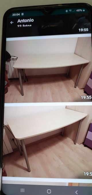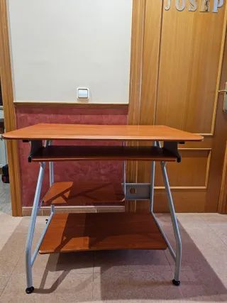 Mesa escritorio en perfecto estado, apenas usada. Ideal para espacios reducidos. - Superficie amplia y limpia. - Estructura resistente de metal y madera. - Diseño sencillo y elegante. - con 4 ruedas y freno - silla de color negra opción+ 10€ Silla es opcional se puede vender el escritorio por 40 € - Se escuchan ofertas - Abstenerse ofertas absurdas Total oferta 40€ de escritorio + 10€ de silla = 50€ de oferta