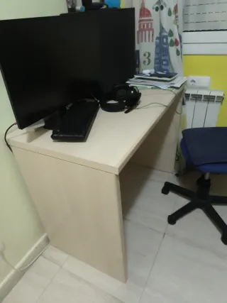 Escritorio moderno y funcional de IKEA. - Diseño limpio y minimalista. - Patas en forma de caballete. - Superficie amplia para trabajar. - Medidas: 160x80 cm - Tiene un pequeño golpe en una esquina