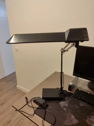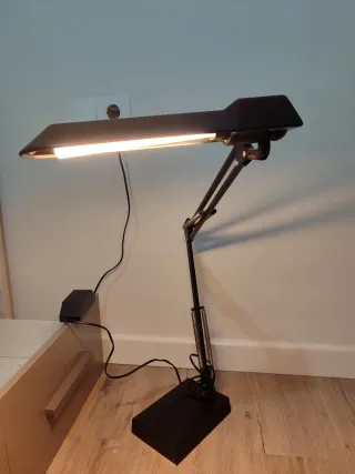 Flexo de diseño moderno para tu escritorio. Su brazo articulado permite ajustar la luz a la perfección. - Base estable. - Brazo articulado con resortes.
