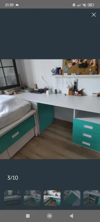 Estructura cama y escritorio de buena calidad. Escritorio de 2m x 50 cm con altura de 160 bajo cama. Se fija a la pared y es totalmente estable.