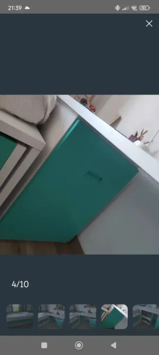 Escritorio modular blanco y verde