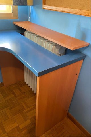 Escritorio azul y marrón