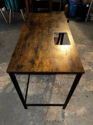 Escritorio madera y metal con hueco
