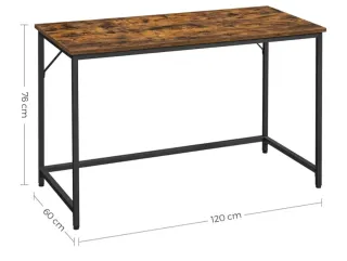Mesa de escritorio con un diseño moderno y funcional. - Superficie con acabado rústico. - Patas de metal negro. - En su caja original, sin abrir.